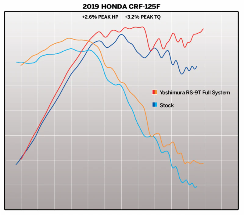 Benefits for the 2019-Present CRF125F Yoshimura RS-9T system include: